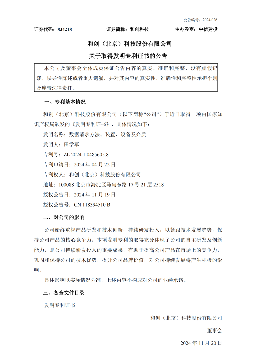 和創科技在技術創新領域持續邁進,近日又成功榮獲了一項最新的專利——“數據請求方法、裝置、設備及介質”。這一專利的獲得,為和創科技在數據傳輸和處理領域提供了更加有力的技術支持。