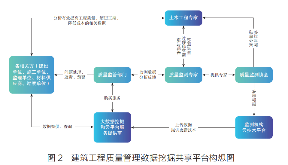 建立基于大數(shù)據(jù)挖掘的數(shù)據(jù)共享平臺,使質量相關數(shù)據(jù)能夠在相關各方之間有效地傳輸與使用,進而提高企業(yè)工程質量管理的水平及政府監(jiān)管效率。