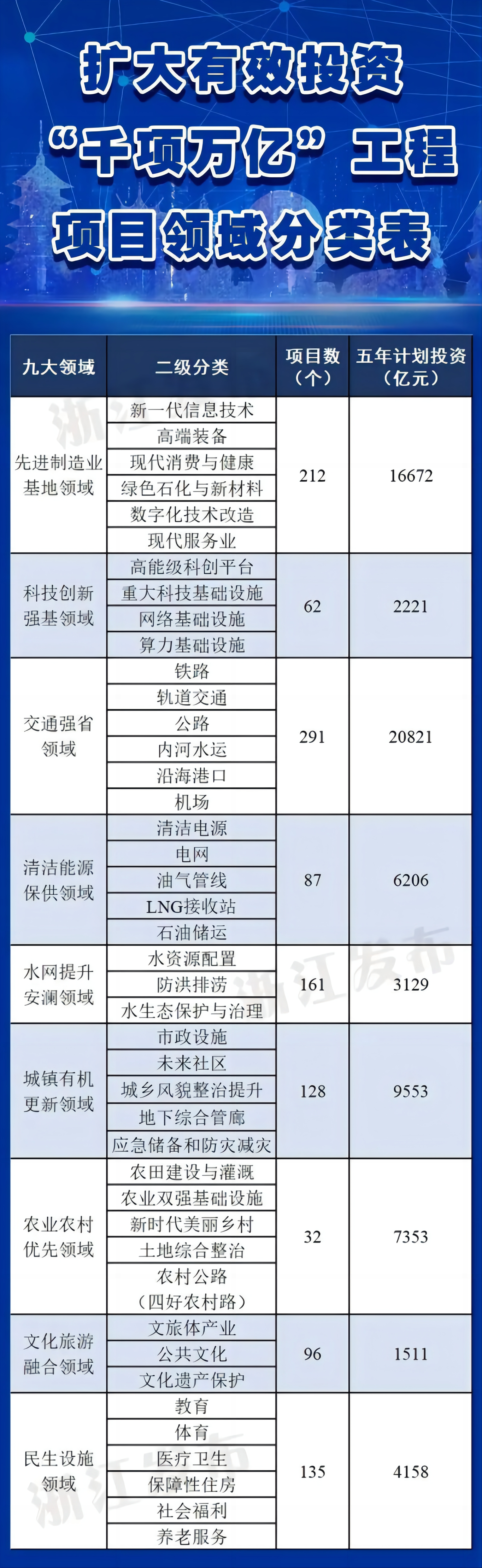 近日,浙江省政府辦公廳印發(fā)《浙江省擴大有效投資“千項萬億”工程實施方案(2023—2027年)》。