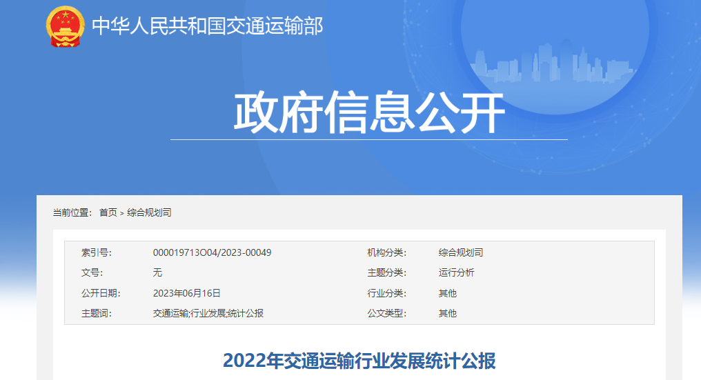 行業(yè)熱點(diǎn)?|?《2022年交通運(yùn)輸行業(yè)發(fā)展統(tǒng)計(jì)公報(bào)》發(fā)布!投資3.8萬(wàn)億元!