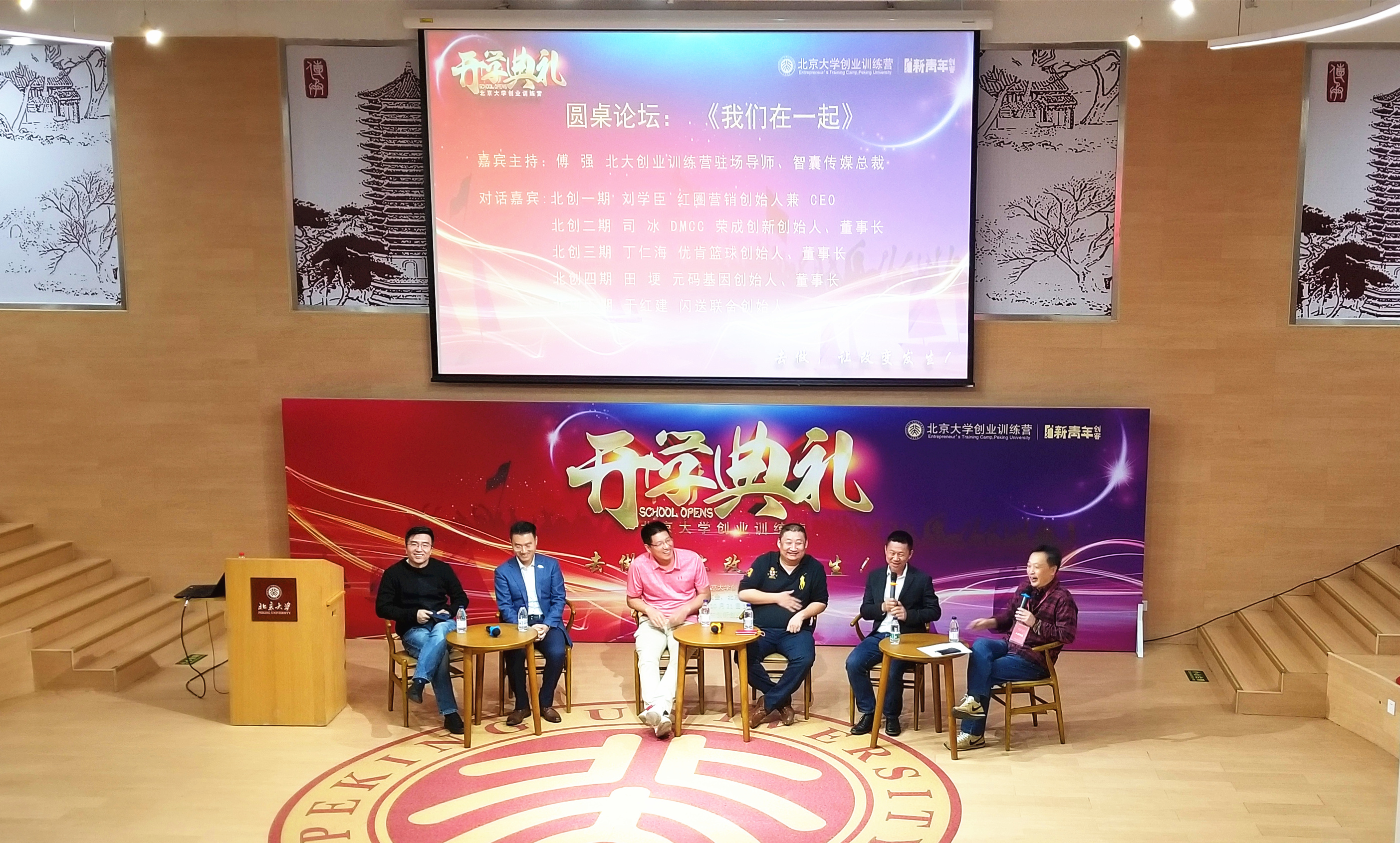 10月21日,北京大學創業訓練營(以下簡稱北創營)全國班(六期)開學典禮在北京大學全球大學生創新創業中心舉辦,典禮邀請了北大企業家俱樂部創始理事、北創營理事長、中坤投資集團董事長黃怒波,北大企業家俱樂部理事長、松禾資本創始合伙人厲偉,北大企業家俱樂部創始理事兼秘書長、拉卡拉集團創始人兼董事長孫陶然等大咖到場發表演講,作為北創營一期的“大師兄”,紅圈營銷創始人兼CEO劉學臣也受邀參加典禮,與北創營其他四期的優秀學員代表進行圓桌對話,分享創業經驗,交流創業心得。