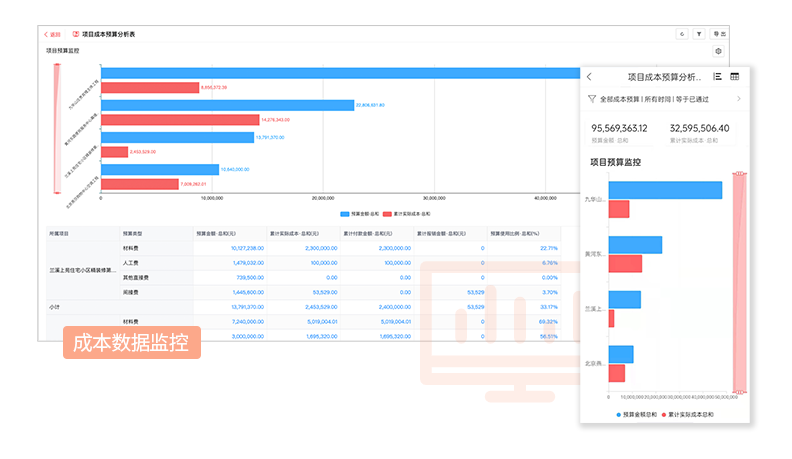 成本數(shù)據(jù)可鉆取查詢,超預(yù)算時,系統(tǒng)自動觸發(fā)提醒。